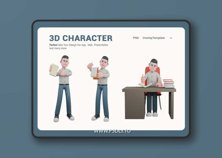 3D Cartoon Writer Character for Projects C56TRZD