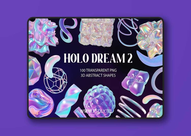 If you want to integrate the holographic trend into your designs quickly and easily, then this 3D shapes are for you! Easy to use – each image is available as PNG, so you can use them in every graphic software you like.