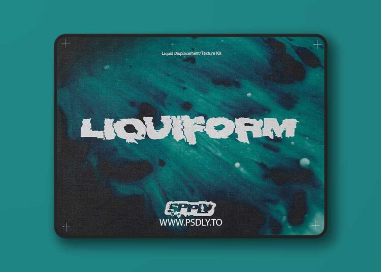 To use, simply place the graphic you would like to displace in Photoshop. Apply the “Displacement” effect, choose your desired amount by changing the “Scale” parameters, then select any Liquiform map to apply the effect.