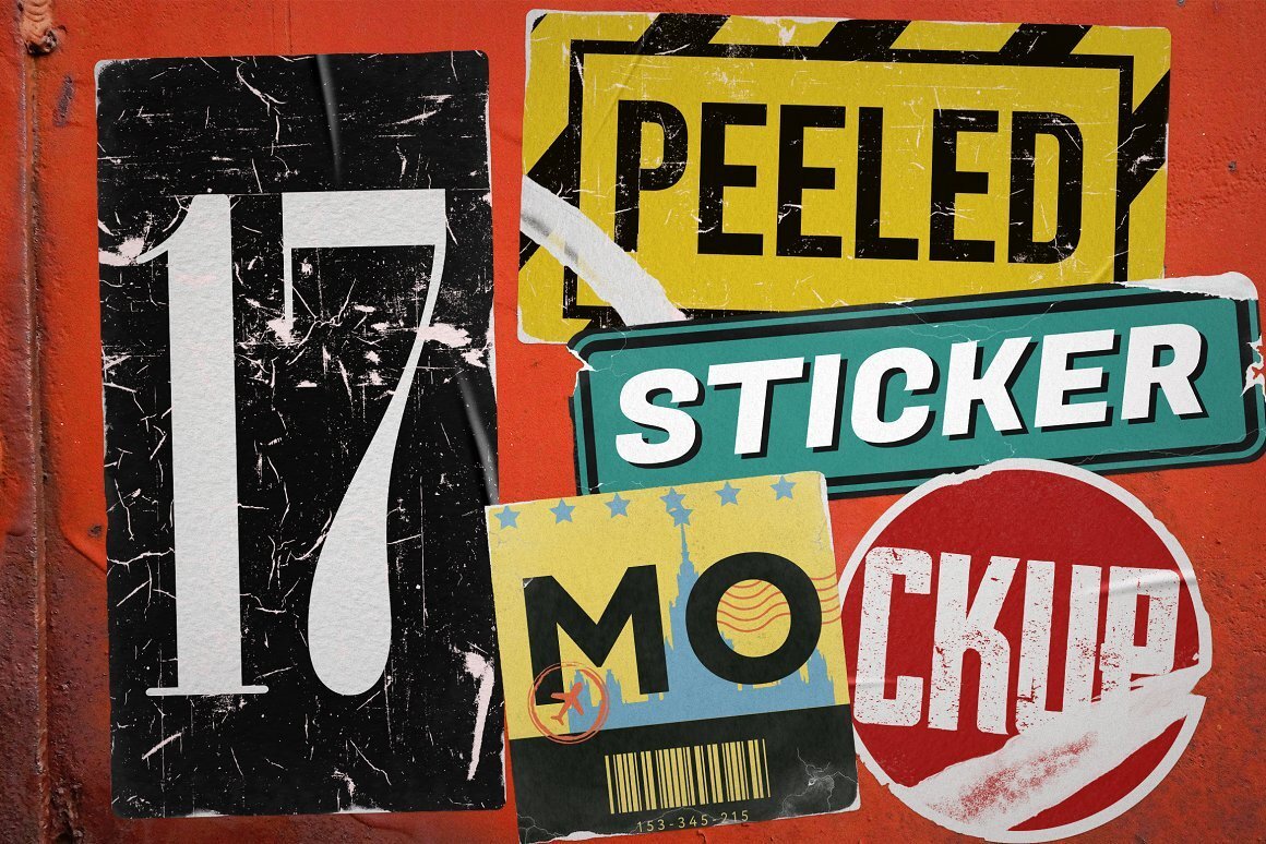With this package you can get the old style of peeled stickers, scraped by time, it is very easy to edit cause work with Smart Object in Photoshop, you just have to insert your design and save the file to see the instant results.