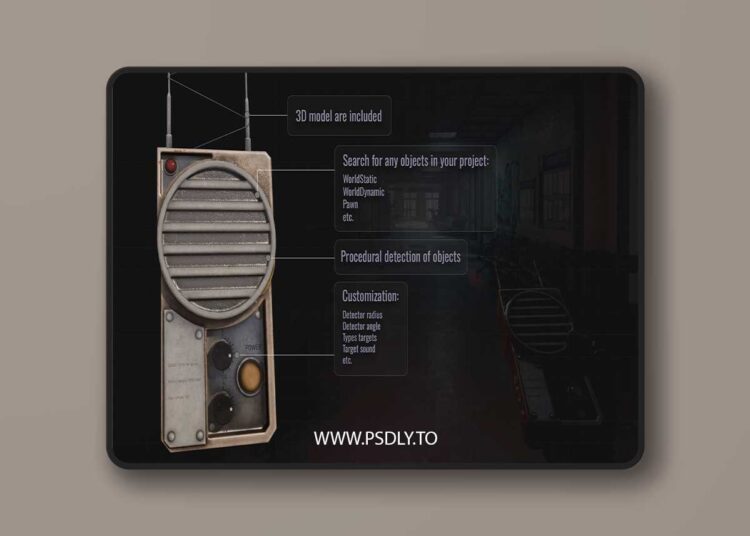 A detector designed to search for any objects it is configured to detect. The primary search indicator is sound. As the device approaches the target, the sound frequency and pitch change. The detector’s 3D model is included in the project!