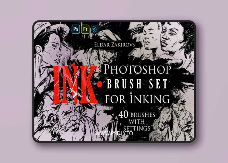 INK• 40 Photoshop Brushes with all settings for inking (37 brushes imitating real pens, brushes, sprays, and splashes + 3 splashes/blot brushes from the “SPLASHES” brush set) for realistic digital Inking in Photoshop.