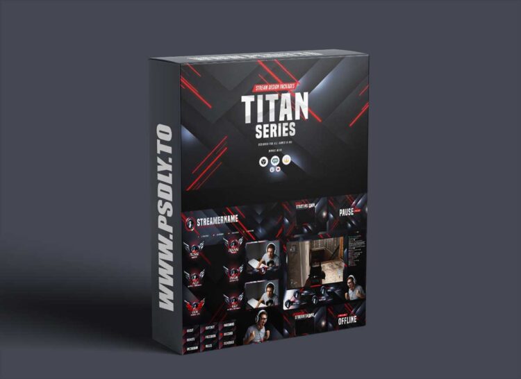 - Designed with striking visuals, sharp angles, and a futuristic aesthetic, the Titan package is ideal for streamers who want to elevate their channel branding across platforms like Twitch, YouTube, and Facebook Gaming. Whether you’re streaming FPS, RPGs, strategy games, or just chatting with your community, Titan delivers a complete and cohesive visual identity that reflects power, professionalism, and personality.