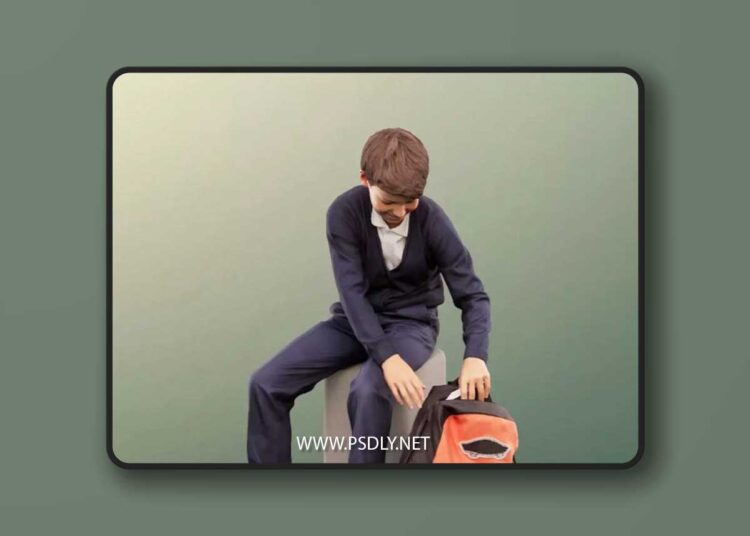 Sitting School Boy With Backpack low-poly 3d Model