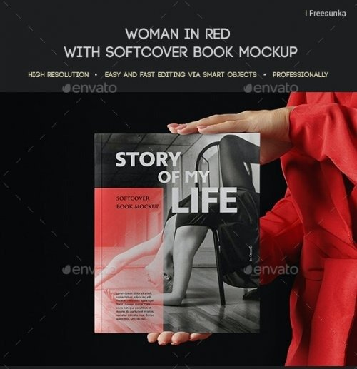 GraphicRiver – Woman In Red With Softcover Book Mockup 28915120
