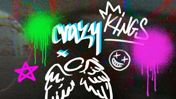 - Includes graffiti, animated elements, overlays, and transitions