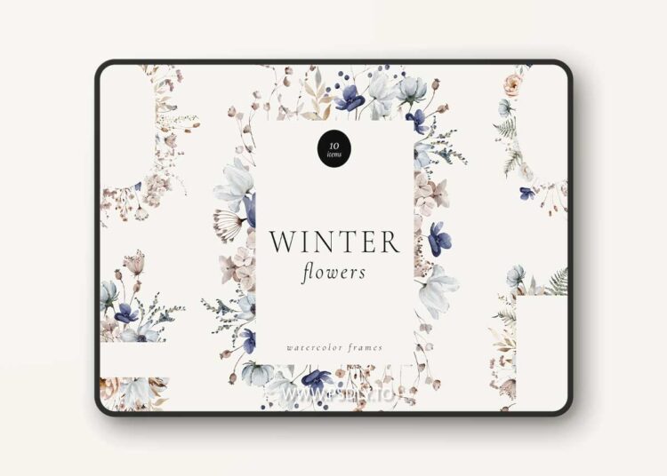 Winter Flowers Watercolor Frames 2L8E3ET